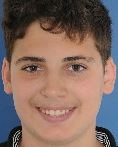 Florian hatte einen Vorbiss. Er wurde in 18 Monaten mit einer festsitzenden Zahnspange und Biobite Korrektor behandelt.